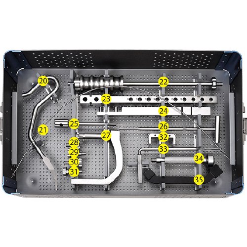 – Includes a variety of essential tools such as drill sleeves, reamers, screwdriver, and guide wire